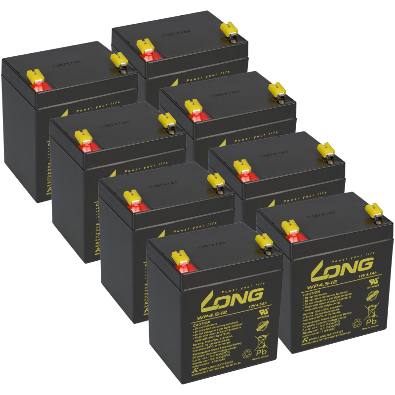 Akkuset kompatibel mit AEG Protect B 3000, bestehend aus 8 Bleiakkus a 12V 4,5 Ah mit 4,8 mm Faston