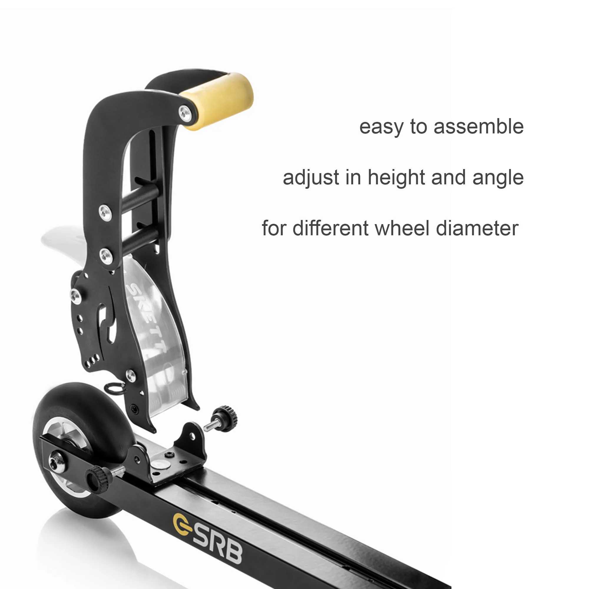 Praktische Bremse, geeignet für alle Skiroller. Leicht zu montieren, höhenverstellbar und Anpassung des Bremspunkts und für alle Rad Durchmesser geeignet. Hergestellt aus Aluminium-Legierung, ist die Stopp & Go-Bremse sehr leicht (unter 140 g) und kein großes zusätzliches Gewicht.